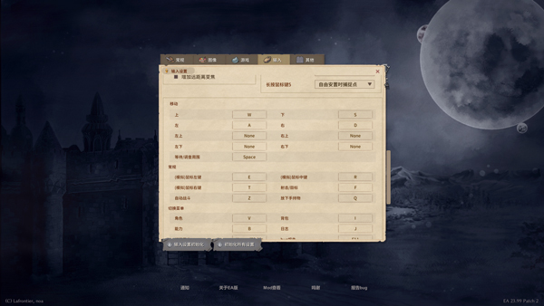 2、在游戏主菜单页面,找到【设置】选项卡,可以自定义语言,画质,音效等和查看按键操控方式。