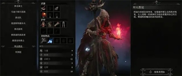 推荐初始等级更低的拜火教徒,但考虑到开局难度两者差距巨大,也可以考虑选择奥利安传教士奥甲安传教士多1点力量废点,成型晚1级。