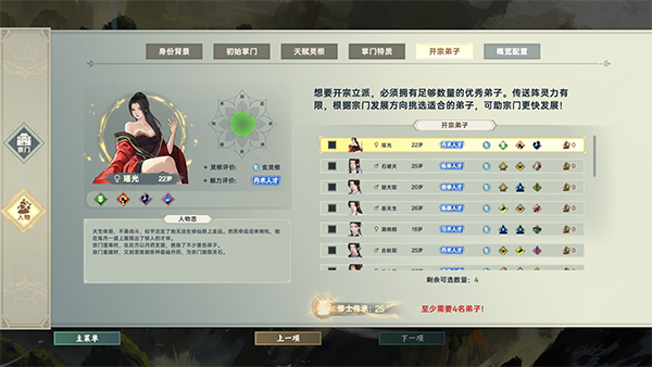 需招募并培养弟子,根据其灵根(如风、雷、水)和特质制定修炼方向,通过闭关、炼丹、炼器等方式提升实力。弟子突破境界可延长寿元,形成“与时间赛跑”的紧迫感,且外门弟子冗余会触发管理危机。
