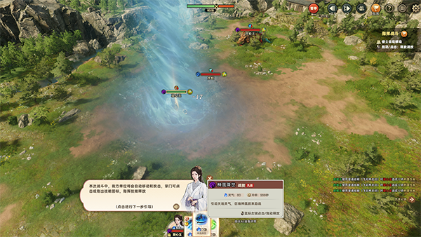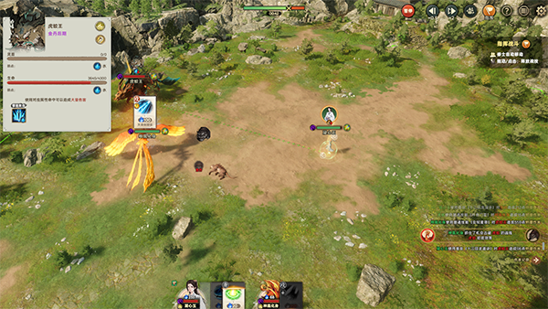 采用3D实时战斗系统,支持单体、小队、军阵模式切换,结合功法、战技与灵根属性(如雷系眩晕、水系回蓝)形成流派搭配,战斗操作偏向RTS风格,强调策略与微操。