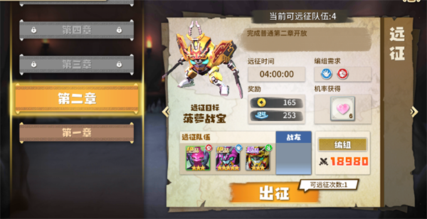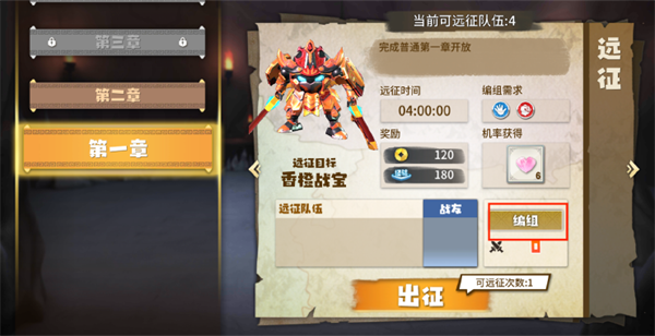 远征的次数随着果宝的等级而增加,等待出征完成后可获取经验和金币奖励,队伍还有概率携带丰厚的体力的奖励归来!