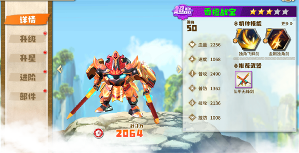 对机甲的培养可以分为机甲升级、机甲升星、机甲进阶和部件升级,利用任务和战斗中获得掉落材料,集齐相应的材料即可对机甲进行全面的进阶和部件提升,最高可将机甲升星至五星。