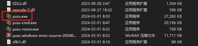 2、然后下拉找到并双击运行“yuzu.exe”文件