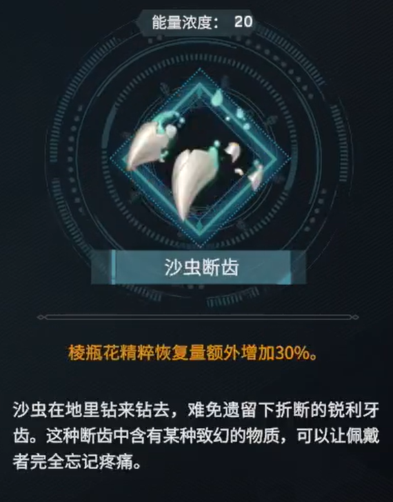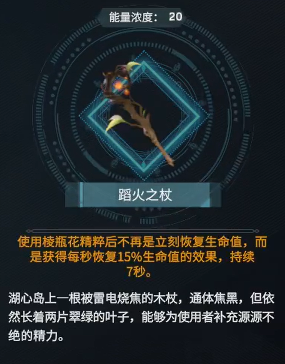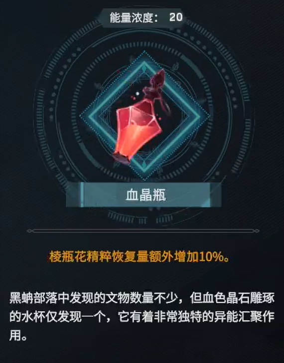 使用棱瓶花精粹恢复生命值后,可获得攻击伤害增加20%的效果,持续20秒。