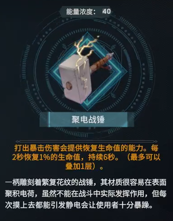 打出暴击伤害会提供恢复生命值的能力。每2秒恢复1%的生命值,持续6秒(最多叠加1层)