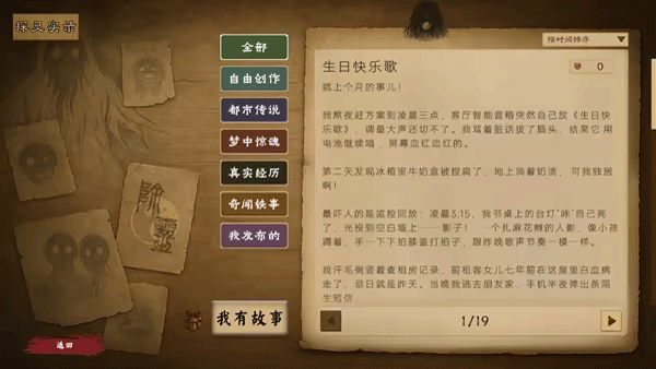 玩家可以在游戏内专属的“探灵实录”中,浏览各种恐怖小故事,也可以留言自身经历和听来的恐怖怪谈。