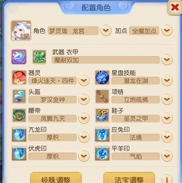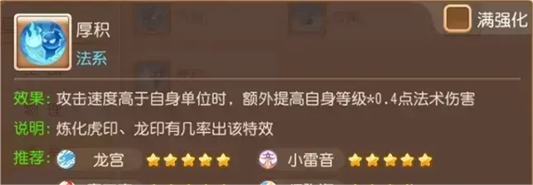 入场技能选择“朗朗乾坤”、离场技能选择“百折不挠”,灵锁技配置“疾风步”以进一步提升速度面板,装备技能推荐高级防御、高级神迹、高级永恒。