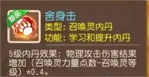 高级内丹推荐配置“舍身击”,平稳高伤、输出能力直观好判断。