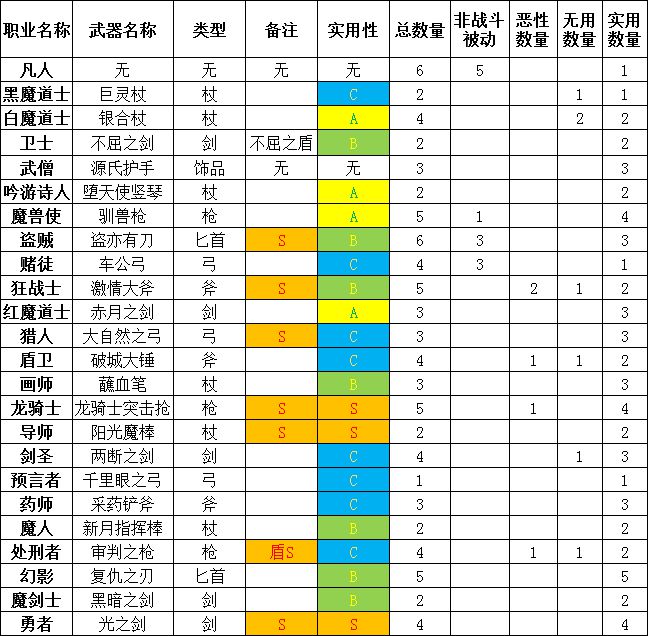 2、这22把武器,由于被动存在的原因,是分三六九等的。并不是每一把都是神器。游戏中六种武器+盾牌的适性,在7个职业中,都有适性S的提升。这七把武器,可以使该武器适性不佳的职业,也提升至适性为S。