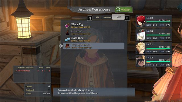 你需要返回蒲公英旅馆的地下室,找到一名叫做亚奇(Arche)的女子,与她对话在材料交换的选项中,可以发现她能够做出风干肉,不过前提是你需要有原材料熏肉(Smoke Meat)。