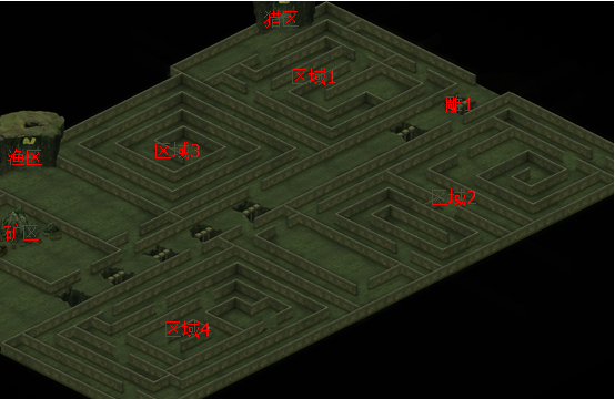 将迷宫大致分为四个区域。