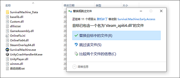 1、首先在本站下载并解压联机补丁压缩包,将里面全部文件拖动到游戏根目录中,选择替换;