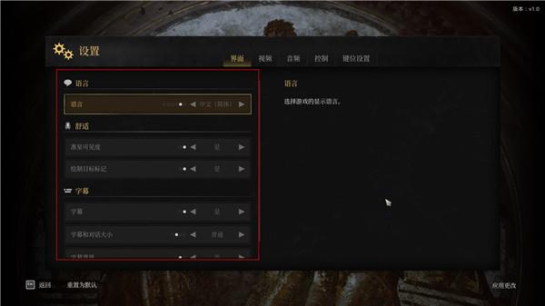4、在设置界面中可以对语言、舒适、字幕进行设置;