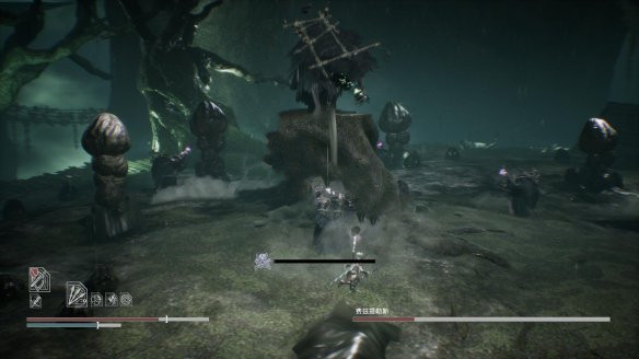 当剩余半血以下以及1/4左右时,贪婪会跳上场景中央的树桩。此时,贪婪不会受到攻击