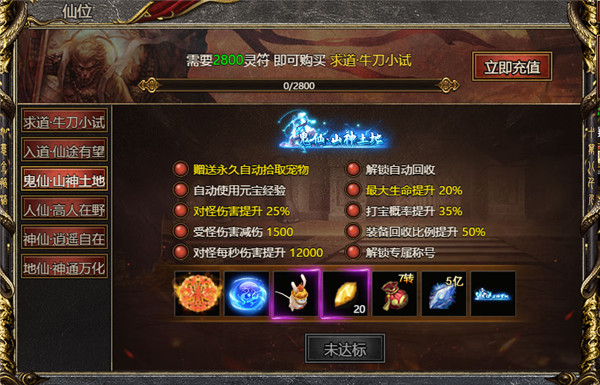 2、平民玩家进入游戏后建议充个首充,再买一个求道·牛刀小试特权!28块钱全搞定!