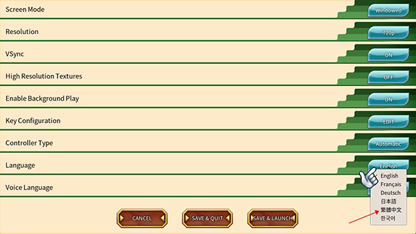 3、由于游戏一开始是英文的,这里选择繁体中文即可;