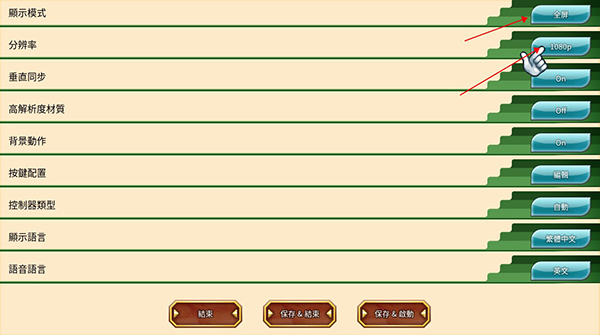 4、在设置里面,建议开启全屏以及符合显示器的分辨率;