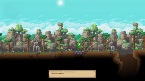 场景:游戏主要建立在一个平面场景当中,角色可以左右移动在这个星球上旅行。场景之间会有环境的差异,譬如有森林、雪地、沙漠等。不同环境中出现的怪物种类、矿物、植物都有可能不同。