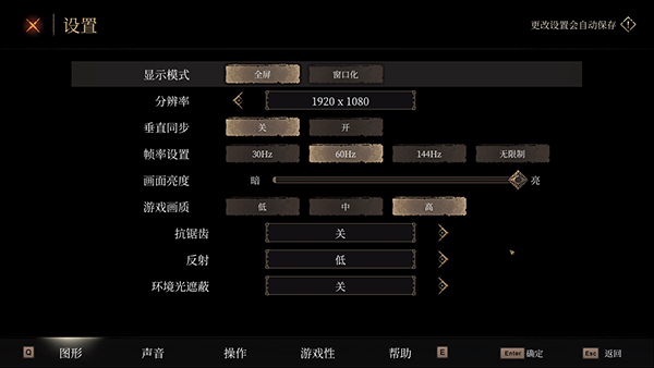 4、接下来进入游戏的设置,小编建议开启全屏以及关闭垂直同步,画质根据自己显卡配置设定即可;