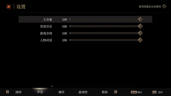 5、在声音设置当中,可以调节游戏的主音量、背景音乐、游戏音效等等;
