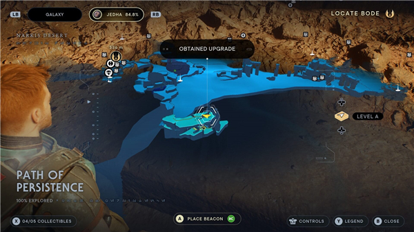 完成所有三条绝地之路后 - 在吉达地图中间的寻路者墓中将打开一扇中央门。前往那里收集技能“地图升级:宝藏”,这将向您展示地图上要收集的所有宝藏,以及伊诺科尔多瓦的光剑。