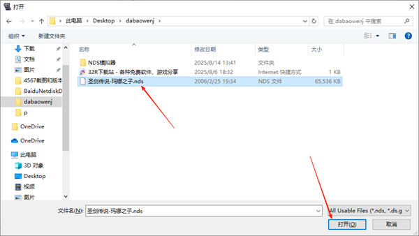 1、解压后,得到NDS模拟器文件,和圣剑传说-玛娜之子游戏文件;