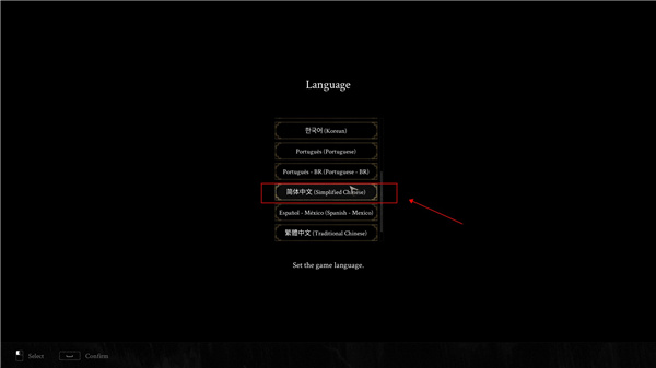 3、进入游戏,在语言选择上选择简体中文;