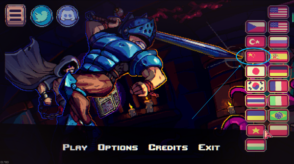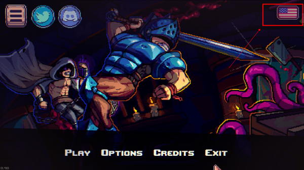 1、进入游戏界面,点击右上角的国旗图标