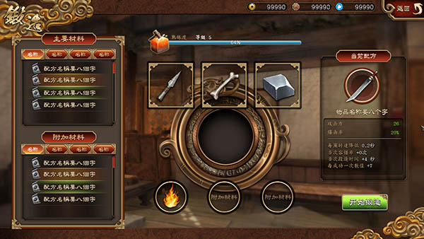 玩家前往杭州可开启锻造系统,可放入指定的配方材料后,开始进行游戏。