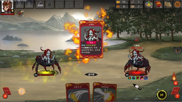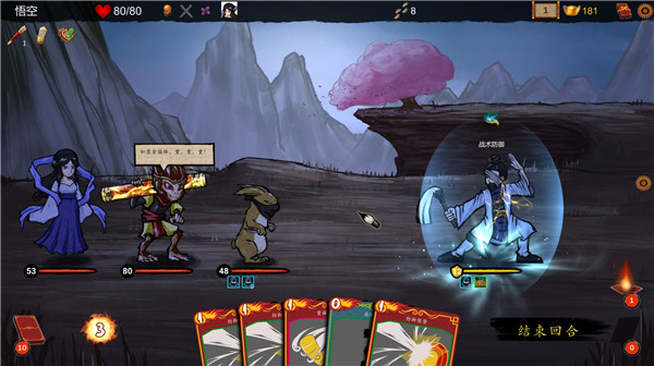 回合制战斗,悟空先开始回合,从抽牌堆中抽出一定量的牌到手中。