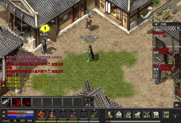 [踏上征程] 前往扬城,打开边村林大地图往东南方向入口进入来到扬城北口 ,往南面入口一路小跑来到扬城,(如在北口途中不幸被怪杀害,那么恭喜你, 点击”马上重生”你就赶上了去扬城的直达列车了。来到扬城里,往右上方向进房子,看到武学导师,和他对话,得到拜师任务