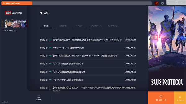您需要安装“Bandai Namco Launcher”才能玩“BLUE PROTOCOL”。