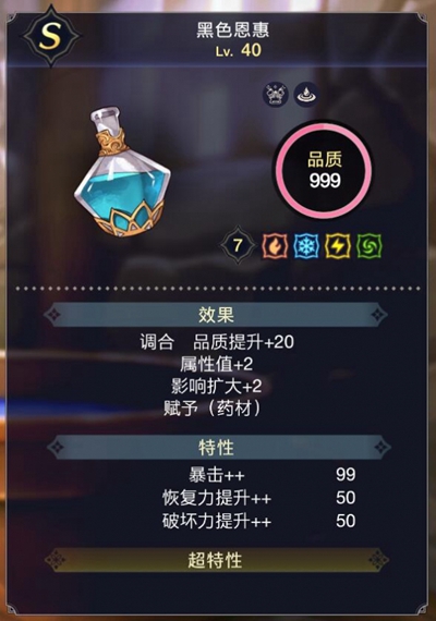 6、全属性黑色恩惠(药材)