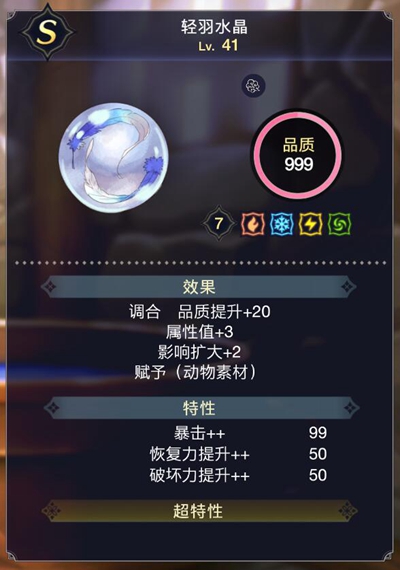 9、全属性轻羽水晶