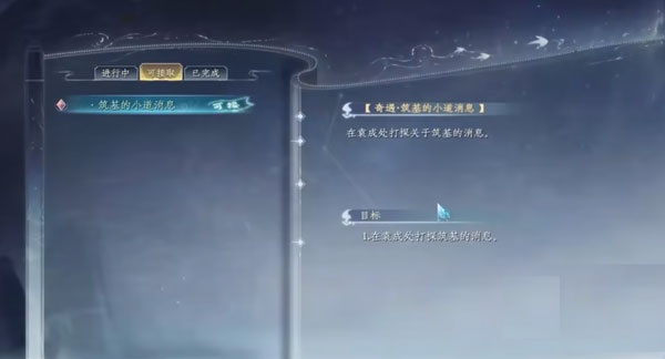 2、初期的时候在玩家达到了练气九层,那么就已经是达到练气期的顶峰时期 ,这时候就需要寻找机会进行突破。在各位继续修行到一定程度时,就会在地图上看到一个紫色的指示标,同时任务栏中会刷新出一个任务,这就是此处突破的必备条件。