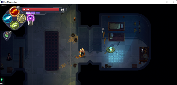 2、玩家来到场景1的尽头,会遇到敌人的偷袭,敌人会释放冲击波攻击玩家,并给自身提供一个护盾。玩家进入场景2后,会遇到毒法师。毒法师在吟唱法术的时候无法移动,它的法术攻击具有追踪效果。玩家来到右下方,解救这里的法师后,营地会解锁铁匠角色。玩家来到办公室这里,击杀4波敌人会进入剧情。在剧情中塞拉斯会突破包围,并回到营地中。