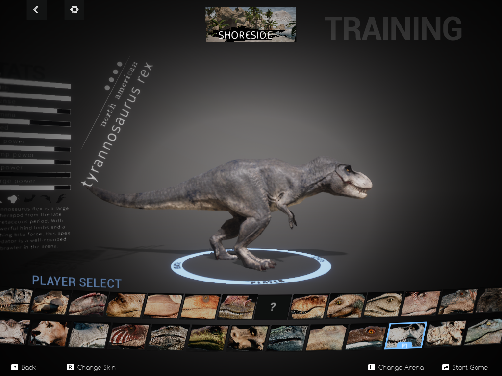 游戏中包含 30 种独特的恐龙,每种恐龙都有自己独特的战斗风格,竞技场将以不同的方式挑战你。你会被甲龙的尾巴重重击倒,也会被肿头龙的头槌撞飞。每一种恐龙都有其独特的危险之处。