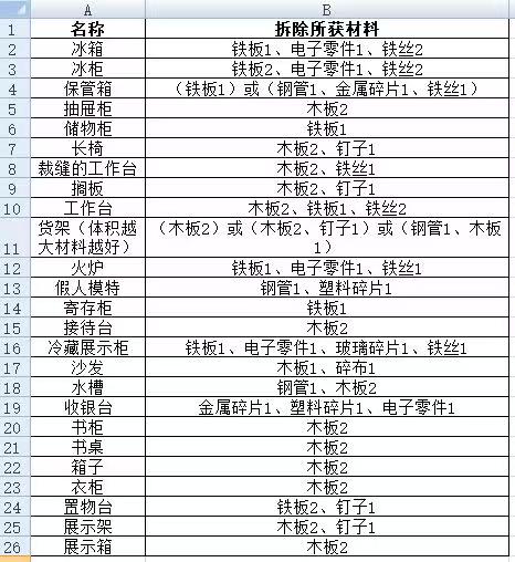终点站僵尸幸存者游戏各家具拆解情况一览
