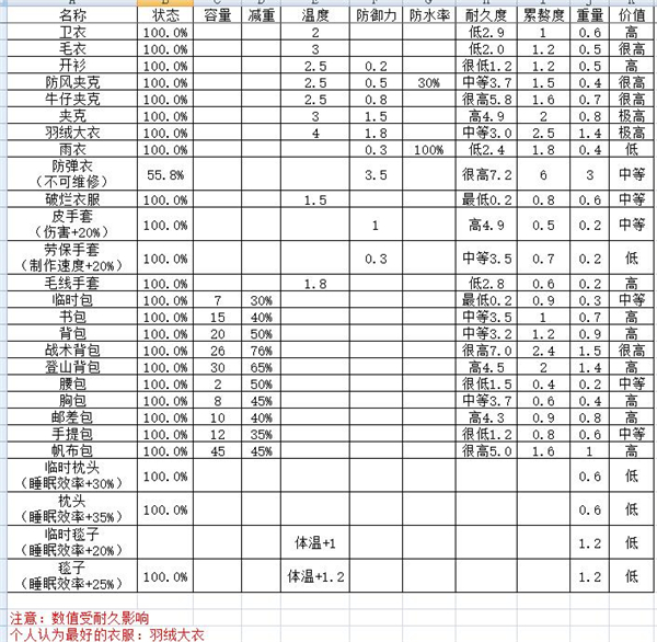 终点站僵尸幸存者各衣服数值介绍