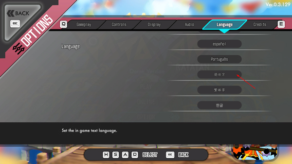 3、接着点击language,选择语言为简体字即可设置游戏为中文;