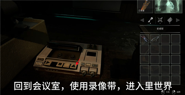 5、来到会议室,点击下图的按键并放入录像带进入里世界;