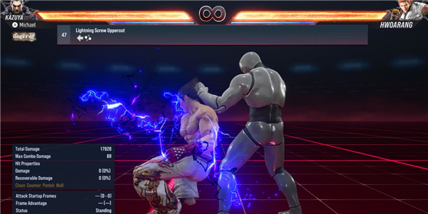 闪电螺丝上勾拳是一八的经典招式,但威力并未丧失。它仍然造成巨大的伤害。然而,缺点是此举有一个可能被打断的结束。为了有效地使用这一招式,玩家必须尝试将对手击倒,并按住PlayStation 上的方向键以及 Square 和 Circle或Xbox 上的X 和 B来击中闪电螺丝上勾拳。