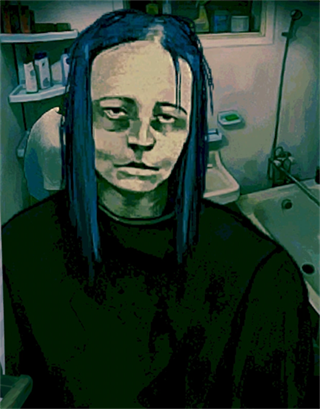 她身穿白色长袖睡袍,赤脚。她的脸色阴沉,但脸颊不像姐妹们那样松弛。她的头发又长又直,略带深蓝色。她的皮肤白皙,略带蓝色。她的指甲干净,没有涂指甲油。奇怪的是,她的虹膜是黑色的,而瞳孔却是蓝色的。