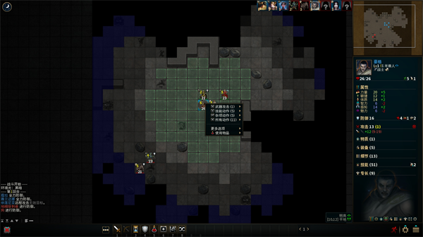 4、这边看到敌人出现后,鼠标右键点击人物可以看到有攻击的方式。