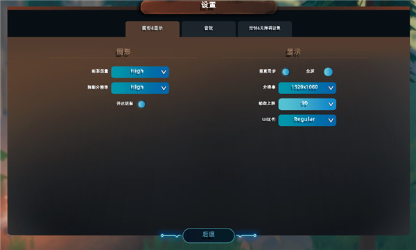 4、点击设置,选择图形显示,用户可以自定义图形质量,分辨率,垂直同步,全屏等等参数;