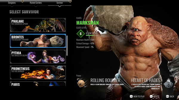 在Achilles Survivor中开始冒险时,第一步是选择您的领域,然后选择该领域内的特定位置,最后选择您将扮演的幸存者(或角色)。您选择的领域和位置会影响Boss和敌人生成点的类型,而您的幸存者则根据其等级影响您的初始力量和奖励属性。