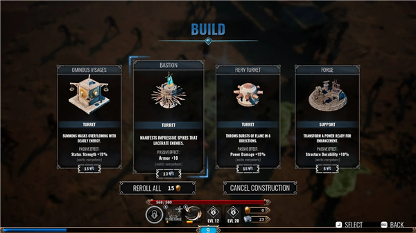 最重要的建筑是熔炉,它能让你进化自己的能力。其他建筑提供各种功能,例如对附近的敌人造成伤害、召唤盟友来协助你或提供治疗选项。努力持续建造建筑,尤其是火焰砲塔,它可以将你的伤害力提高15%。