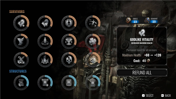 升级恩惠的主要资源是奥波和金刚,它们通过完成跑动和达成里程碑获得。重要的是,退还任何已分配的奥波和金刚都是完全免费的。通常建议平均分配升级。记得在获得420 个奥波后重置恩惠,以最大化单个恩惠,这将允许您解锁牧师幸存者。