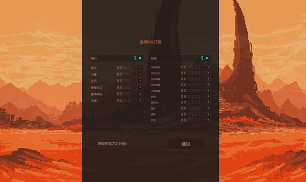 3、选择难度后进入到属性分配界面,可以直接点继续。