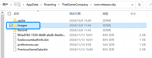 ①使用游戏内相机进行拍照后,照片存储路径为C/UsersuserAppDataRoamingThatGameCompanycom.netease.skyimages